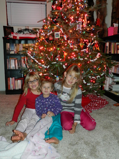 We started back up with my families tradition of stringing popcorn and cranberries. The two older girls had so much fun helping and well, Erin had a lot of fun eating the popcorn!
